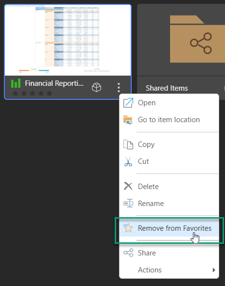 - Add to Favorites - This option is offered if the content item is not currently a Favorite, selecting it saves the content item or folder as a favorite.