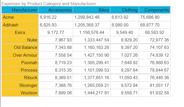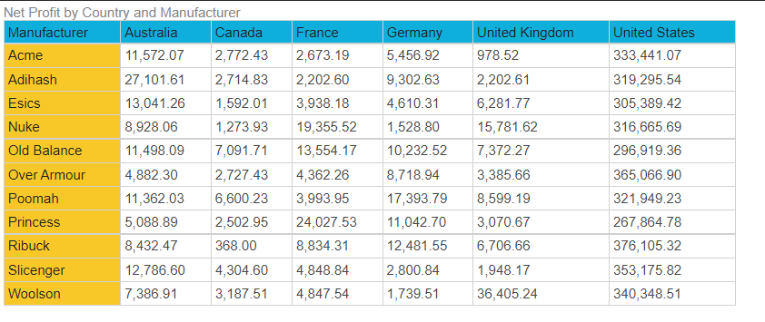 Here, the alignment was set to left for the first two rows, middle for the 3rd row, and right for the remaining rows. This is achieved using contextual grid formatting.