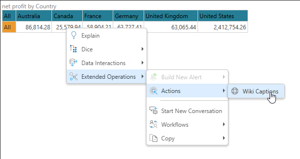 When working with MS OLAP, Tabular, and BW models, actions that were configured in the data source can be executed in Pyramid. For more information, see Cube Actions.