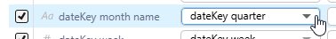 Certain time intelligence columns are not sorted by themselves. Columns like Full Quarter, Full Month Name, and Full Week are sorted by numeric columns that contain the start dates for the period and Columns like Month Name and Weekday Name are sorted by number columns: