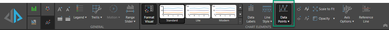 If you want to show the data points on your visual, you must either enable Data Points in the Component Ribbon or enable Shapes in the Formatting panel.