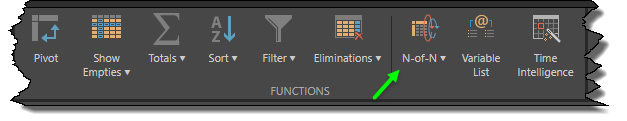 The N-of-N wizard dialog is available from the Query ribbon. Click N-of-N to add new, edit existing, and remove existing N-of-N logic from your reports and queries. (This is how you can edit or refine the logic created from the quick menu item described above.)
