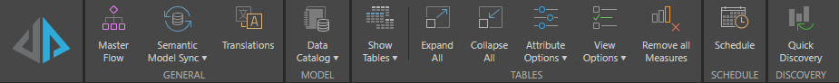 - Semantic Model Sync: Click this button to sync the Model. The sub-menu controls the automatic syncing behavior.
