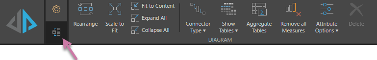 The 'Diagram' functions are used to change the look and feel of the Tables diagram.