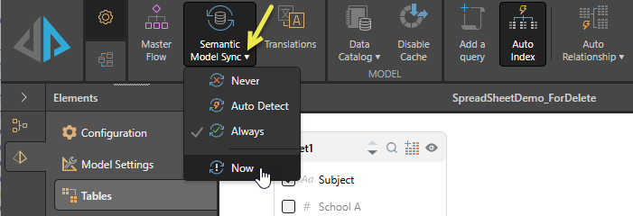 - Click Semantic Model Sync > Now.