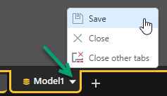Model definition files are saved and shared via the Save dialog in Model. They can also be shared from the item's Actions Panel.
